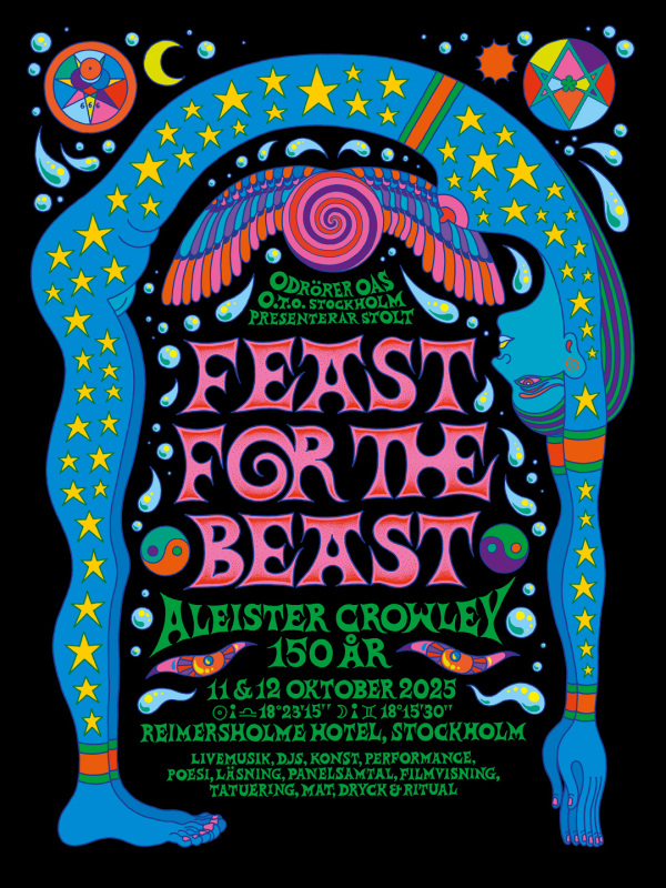 Feast for the Beast är en två dagars välspäckad minifestival för att fira och belysa Thelema och dess grundare Aleister Crowley i egenskapen av en absolut tongivande ådra inom västerländsk kultur, esoterisk filosofi och praktik. Helgen bjuder på episka samtal, livemusik, DJs, film, konst, mat och dryck. Glimtar ur en levande Thelemisk kultur långt bortom, och hitom 1875.